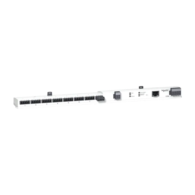 Módulo I/O Acti 9 para comunicación Modbus TCP Ethernet con servidor web, compatible con PLC.