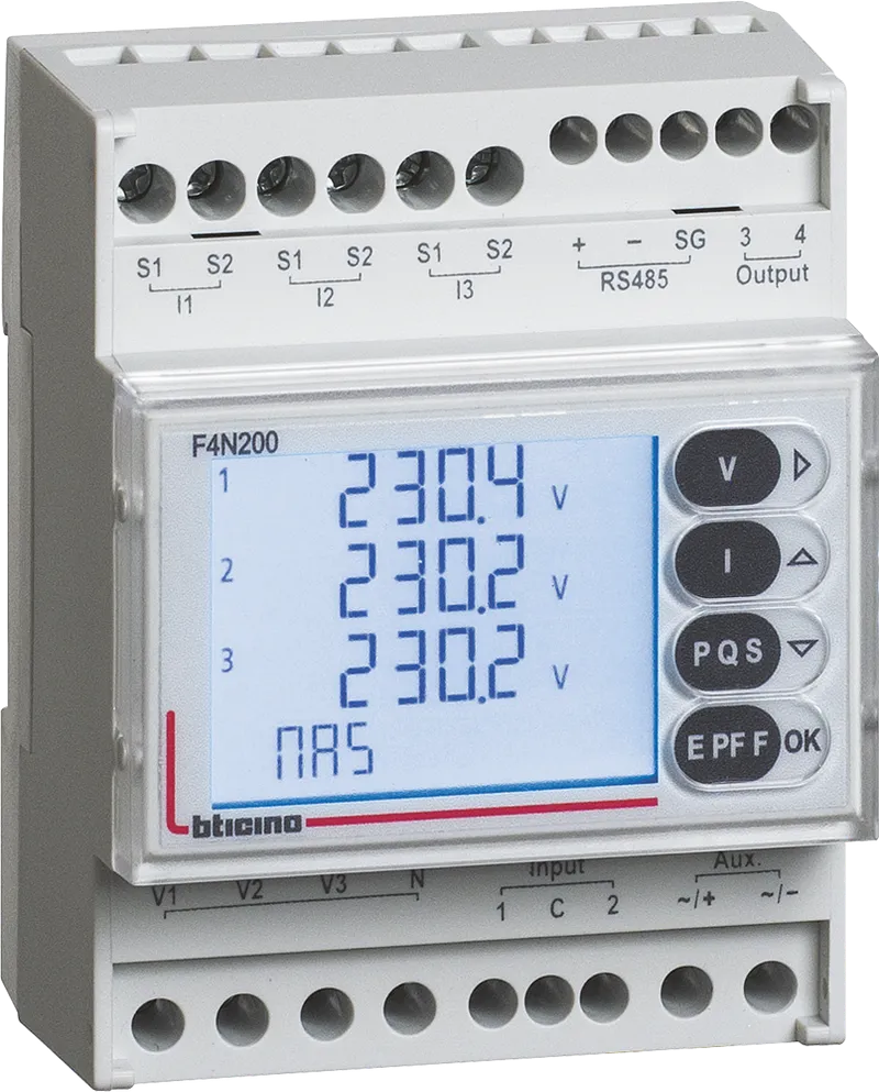 Analizador de Redes Multifuncional LCD con comunicación RS485, 4 mod. DIN, Mide V, I, P, Q, S, FP, Hz, THD