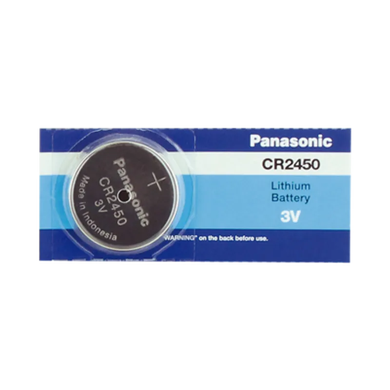 Batería de litio tipo moneda 3V CR2450, ideal para dispositivos electrónicos. No recargable.