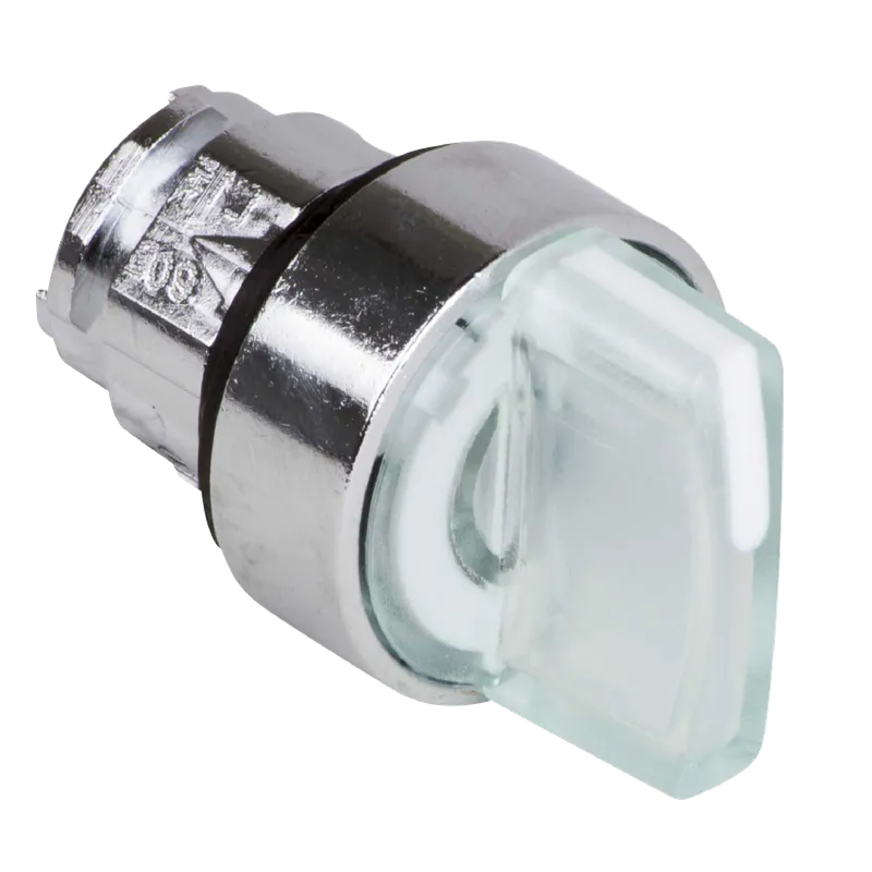Cabeza de selector iluminada de 3 posiciones, Ø22 mm, color blanco. Para montaje en panel Ø22.