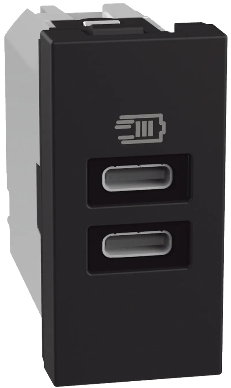 Cargador USB Tipo C + C, 127V~, salida 3A - 5Vcd 1 módulo, Negro Mate