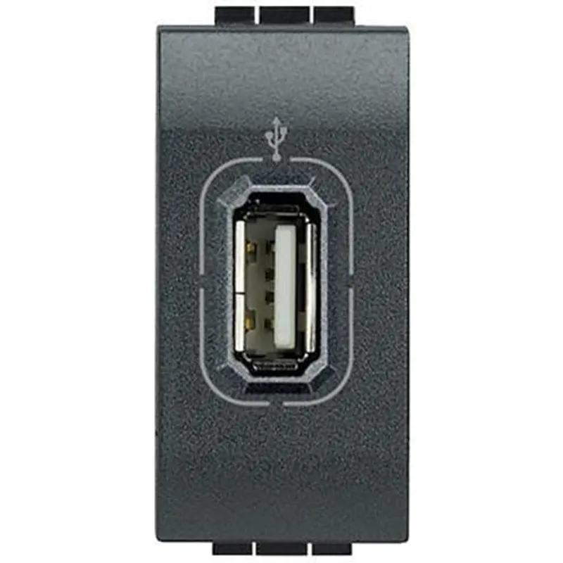 Conector USB para transmisión de datos en color negro antracita, ideal para instalación en hogares y oficinas.