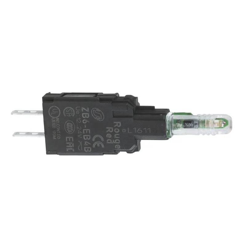 Cuerpo piloto LED rojo con collar de fijación y LED integral. Tensión 48–120 V.