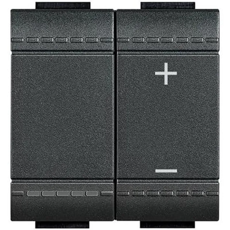 Dimmer universal pulsante en color negro antracita, compatible con 127V y 2 módulos. Ideal para espacios modernos.