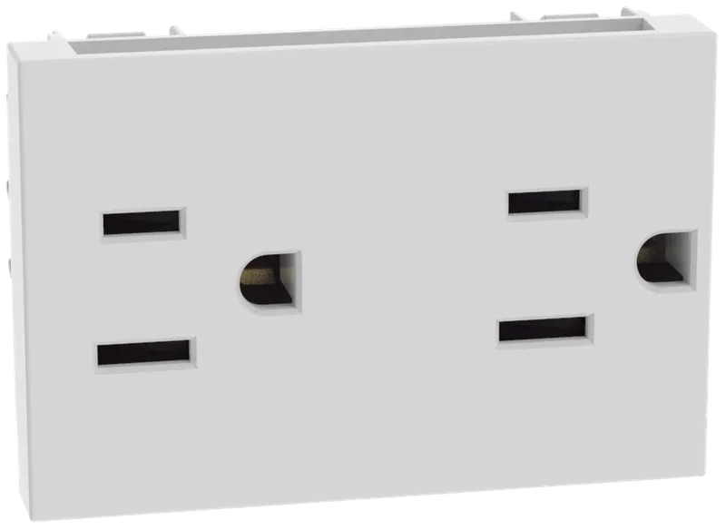 Tomacorriente Dúplex 2P+T, 15A - 127V~, 3 módulos, con protección infantil. Blanco
