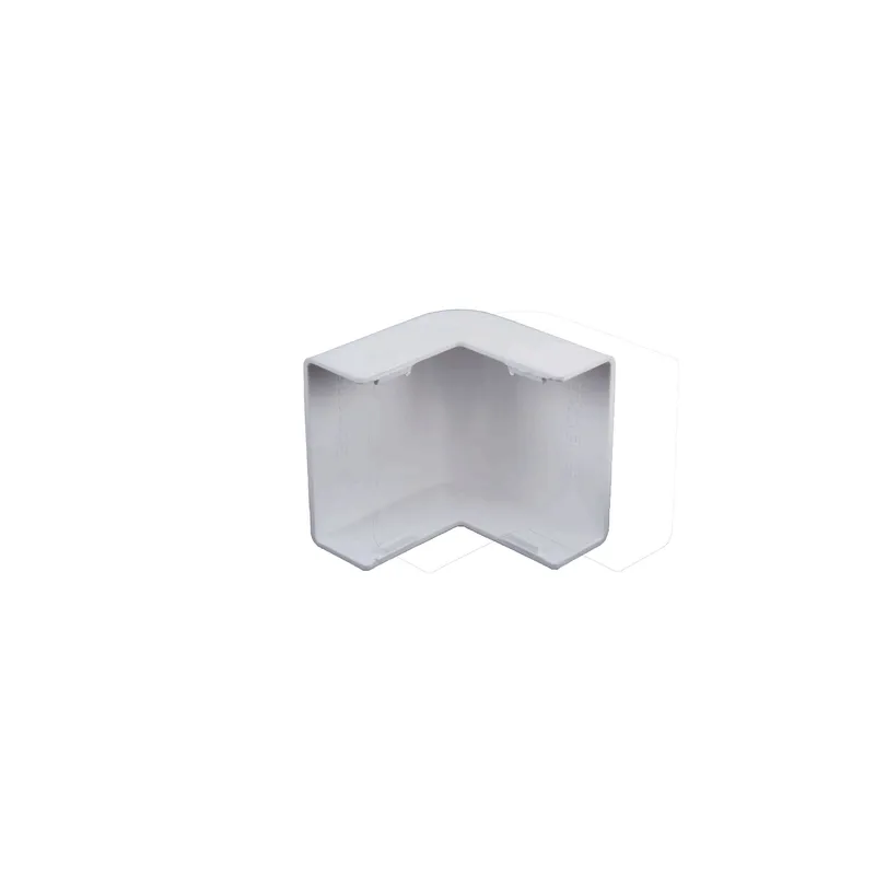 Accesorio con ángulo externo para canaletas. Para unir dos canaletas en una misma, redirigir el cableado y evitar cortes innecesarios, brindando protección