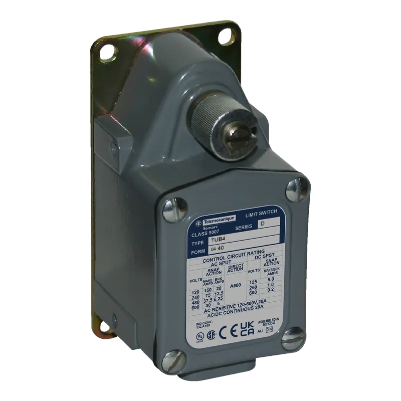 Interruptor de límite (fin de curso) SCHNEIDER, modelo 9007TUB5. Detección mecánica.