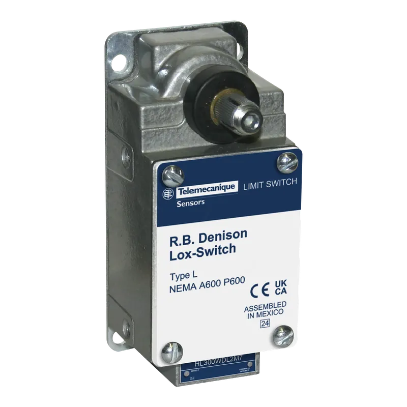 Final de carrera Schneider. Interruptor de límite 600 V / 12 A. Dimensiones 82×12.7×32.3 mm; 0.68 kg.
