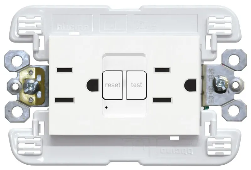 Toma de corriente duplex ICFT con autoprueba y protección infantil. Garantiza funcionamiento seguro cada 3 segundos.