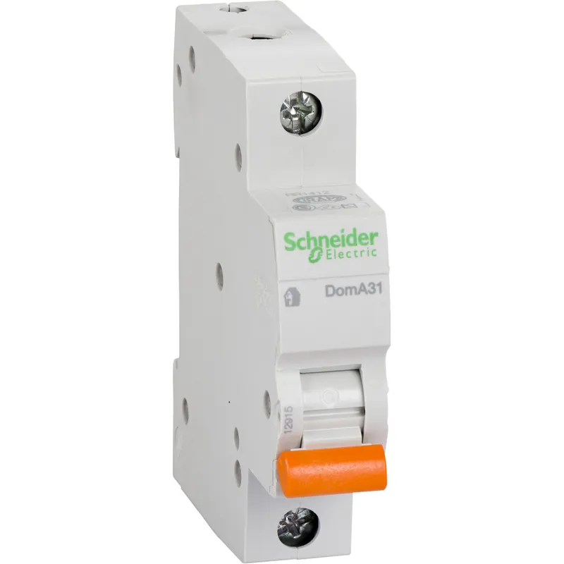Interruptor termomagnético 1P 25 A curva C para riel DIN; protege contra sobrecargas y cortocircuitos.