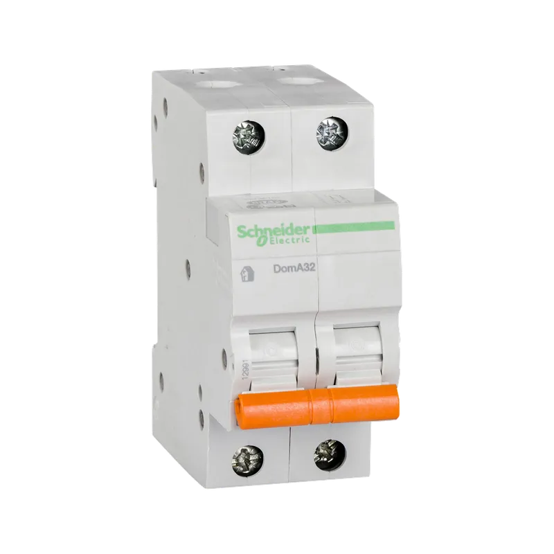 Protege contra sobrecargas y cortocircuitos. 2 polos, 6 A, curva C. Compatible con riel DIN.
