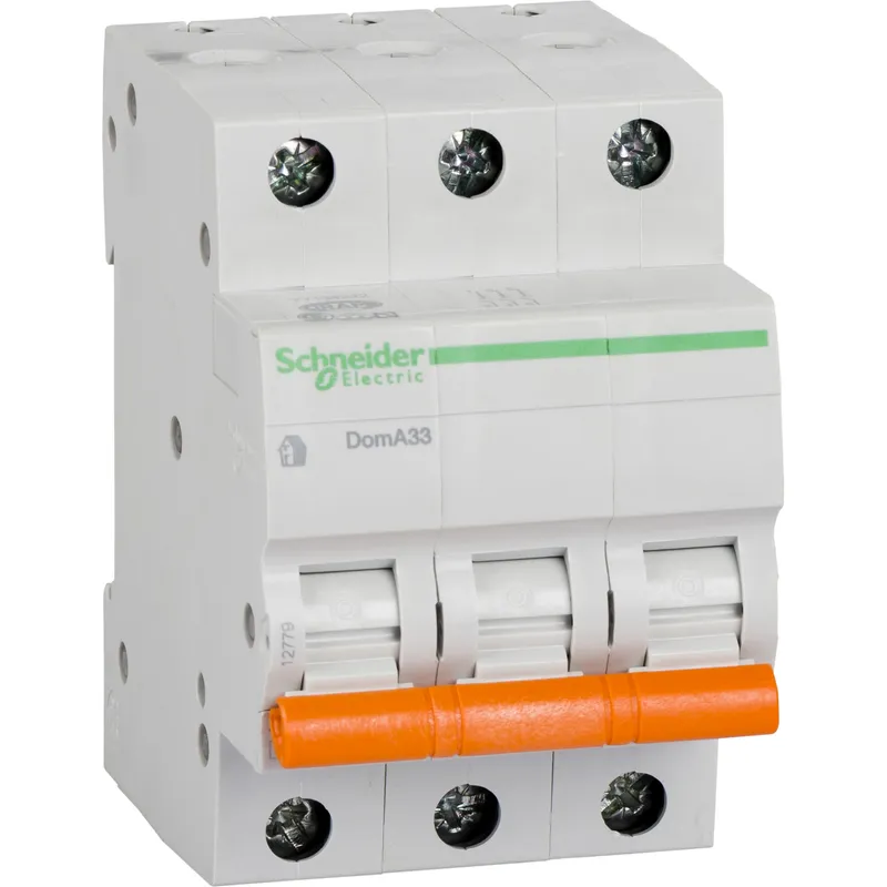 Protección termomagnética contra sobrecargas y cortocircuitos, 3 polos 10 A curva C para riel DIN.