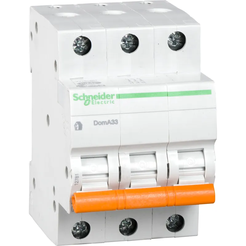 Protege contra sobrecarga y cortocircuito. Interruptor 3P 20 A curva C; compatible con riel DIN.