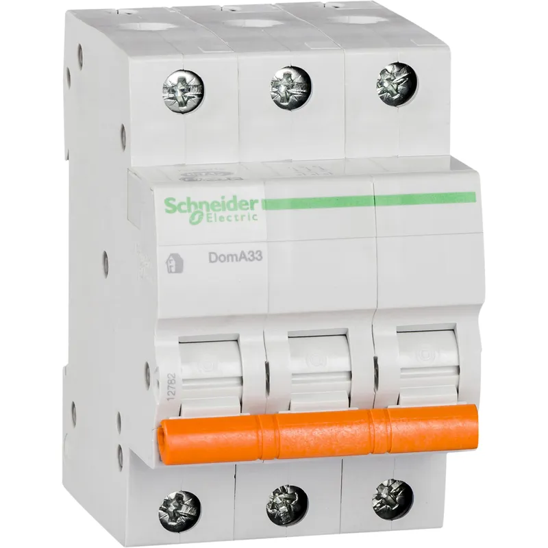 Protege contra sobrecargas y cortocircuitos; 3 polos, 25 A, curva C, montaje en riel DIN.