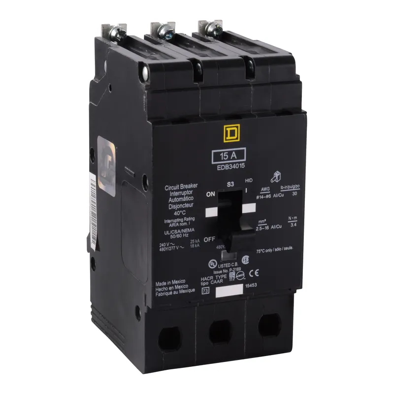 Interruptor mini marcoE SquareD 3P, 15A, 480Y/277 V, 18/25kA