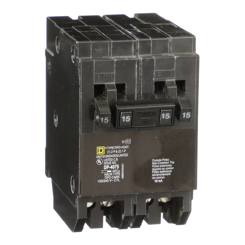 Interruptor termomagnético enchufable QUAD TANDEM 4 en 1, 120/240 V AC y 10 kA.