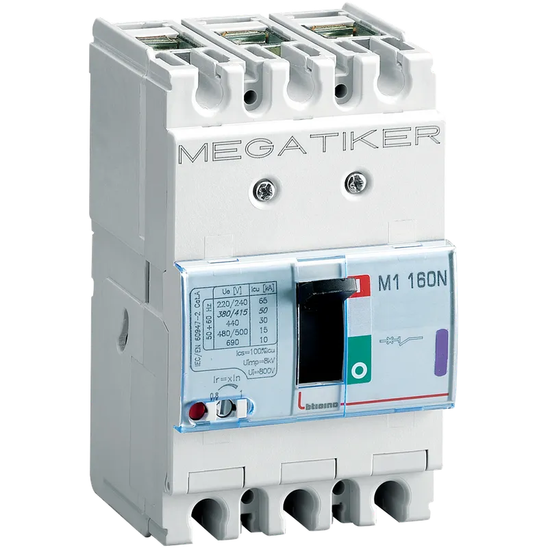 Interruptor termomagnético M1 160N, 3 polos y 100 A para aplicaciones eléctricas. Ideal para proteger circuitos.