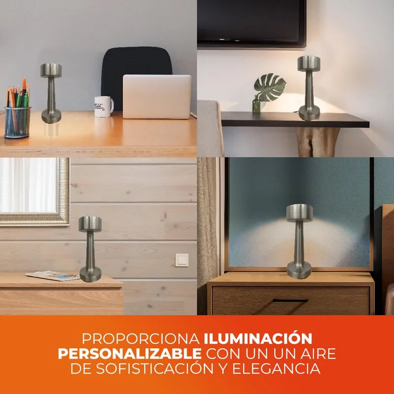 Lámpara de mesa LED 3 W portátil con luz blanca ajustable y atenuable. Ideal para crear ambientes acogedores en interiores.