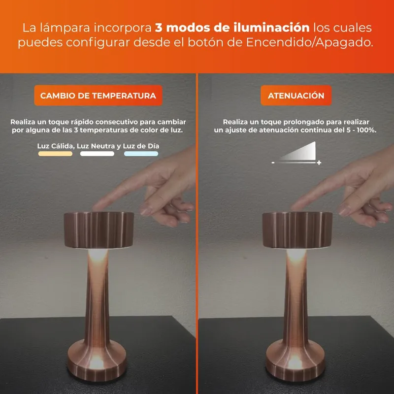 Lámpara de Mesa LED 3 W Portátil, Recargable, Luz Blanca Ajustable y Atenuable Táctil