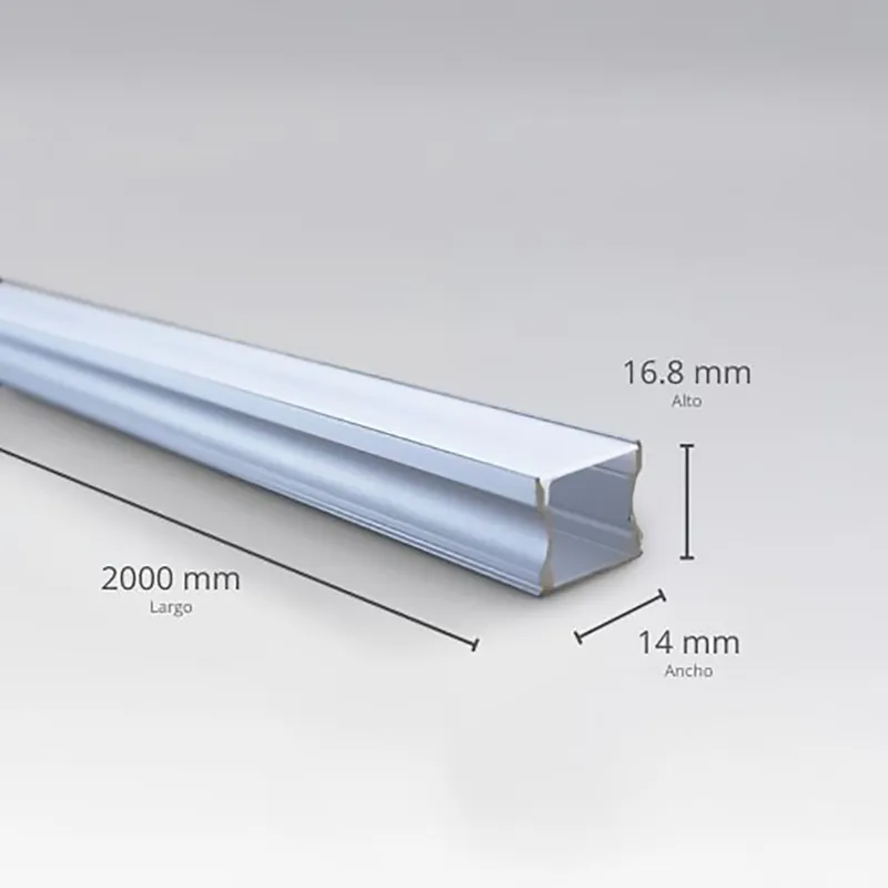 Perfil de aluminio de 2 metros diseñado para tira LED con cubierta de policarbonato opalina.