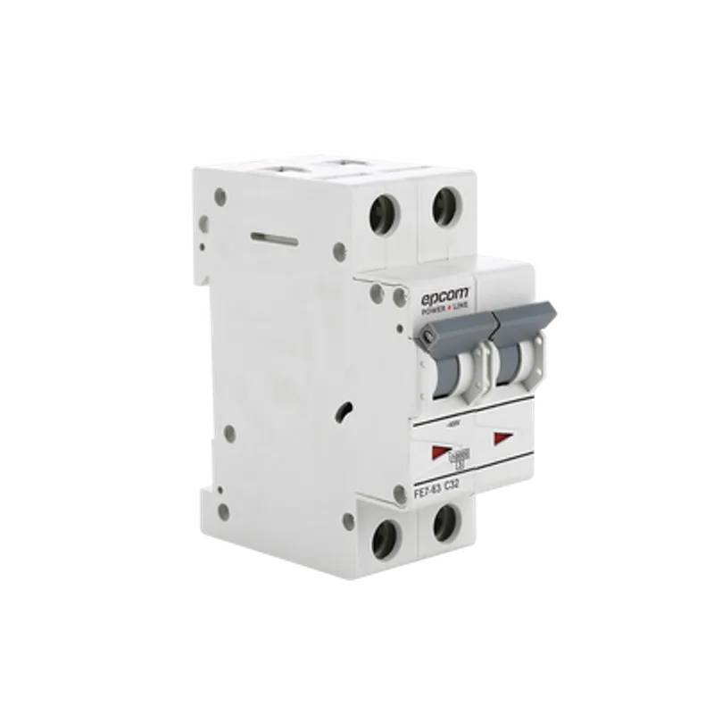 Protector térmico 2P de 32A y 400V CA, ideal para aplicaciones fotovoltaicas. Ligero y confiable, con alta capacidad de ruptura.