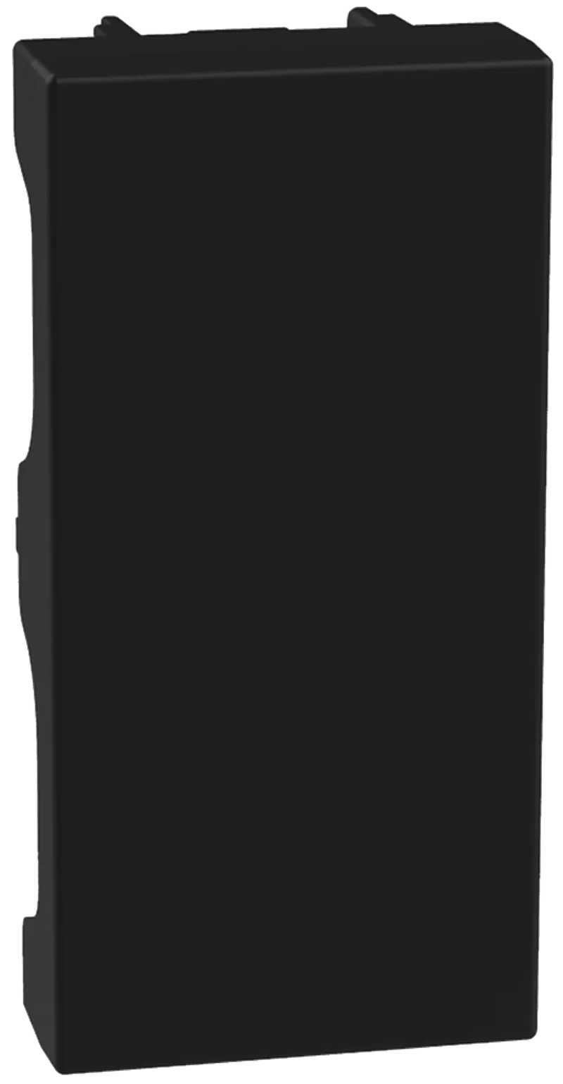 Tapón ciego de 1 módulo en color negro mate, fabricado en resina ABS, ideal para aplicaciones residenciales y comerciales.
