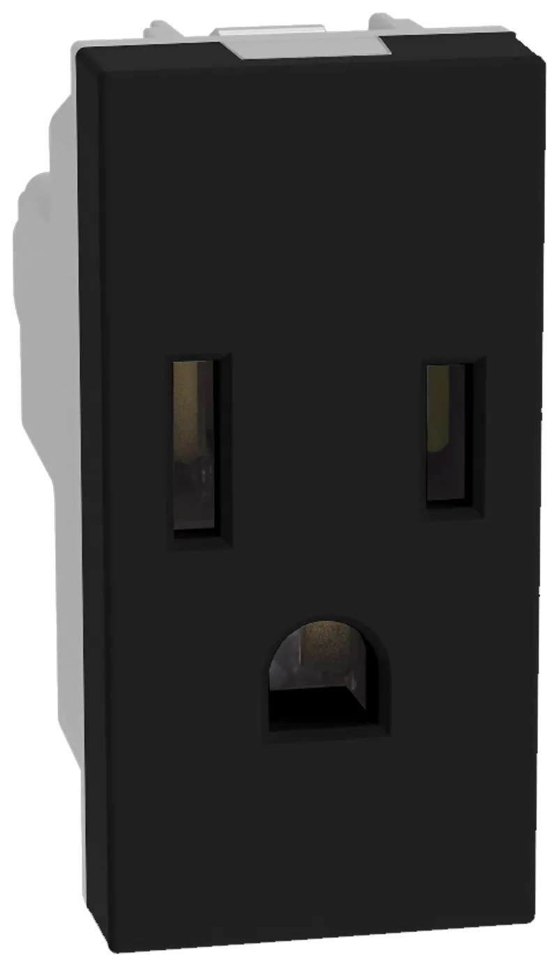 Tomacorriente 2P+T, 15A - 127V~, 1 módulo, con protección infantil. Negro Mate