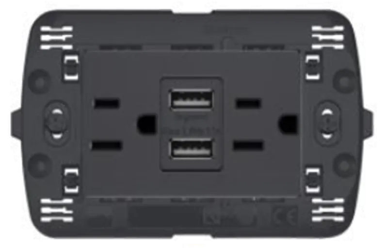 Toma de corriente dúplex 2P+T con 2 USB A+A color antracita 3 mod. 3.1A incluye chasis, 127 V