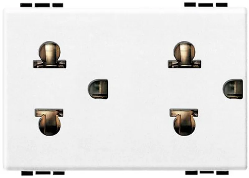 Toma de corriente euroamericana duplex 16A, 2P+T color blanco para uso general.