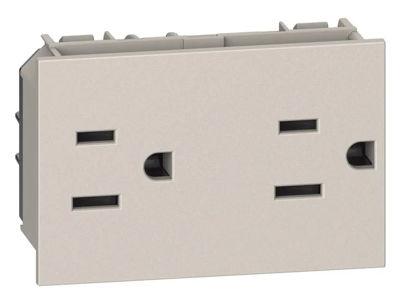 Tomacorriente duplex 2P+T con protección infantil color arena 3 mód. 15A, 127-250V