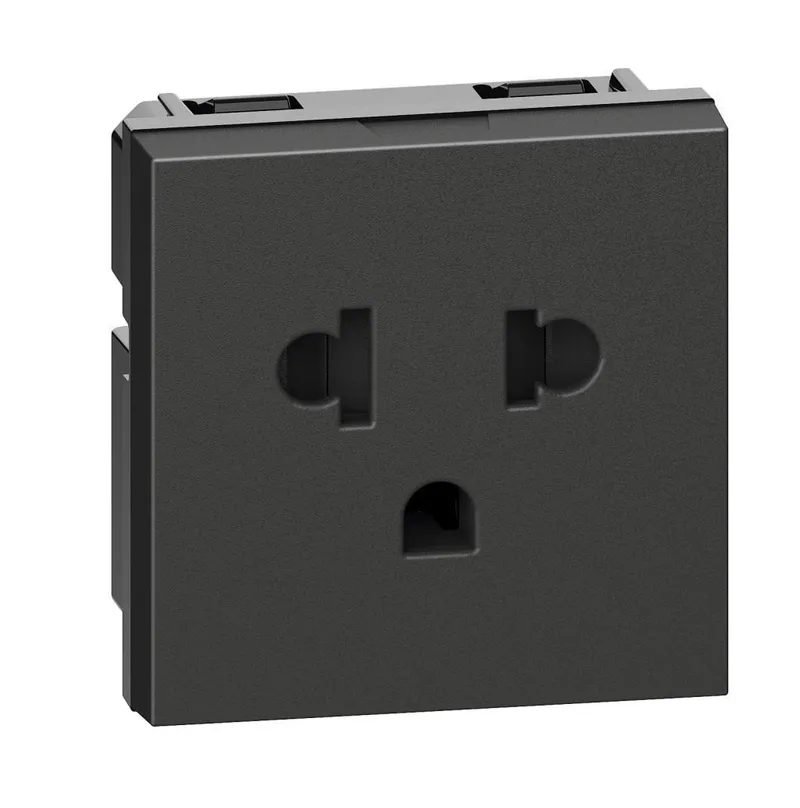 Tomacorriente euroamericana sencilla 2P+T con protección infantil color negro 2 mód. 16A, 127-250V